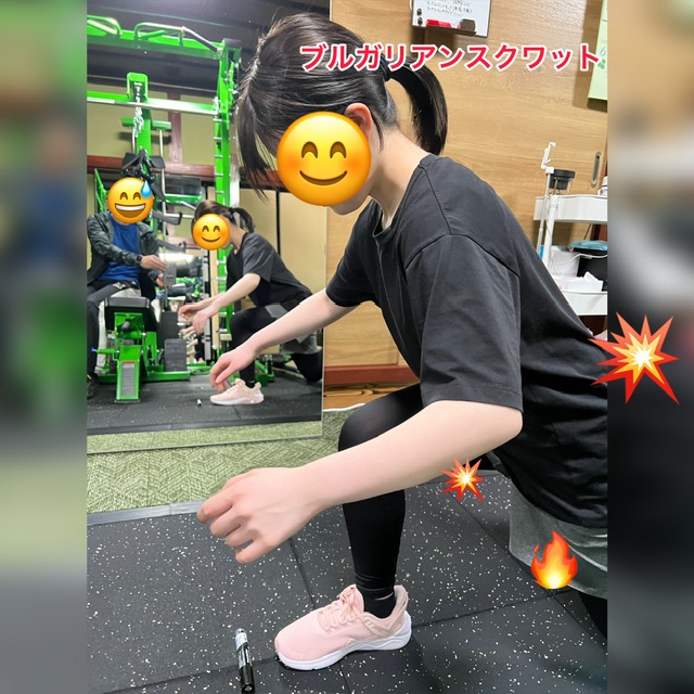 大好き(得意)な脚トレ 今まではスミスマシンでワイドスクワットでした 今日からは体幹も鍛えられるブルガリアンスクワットに変更 前脚のハムとお尻、後ろ脚の前モモ、そしてバランスを取るために体幹も鍛えられる少しレベルの高いトレーニングです その他の部位のトレーニング種目もほぼ変更していますが、すべてかなり上手にできていました